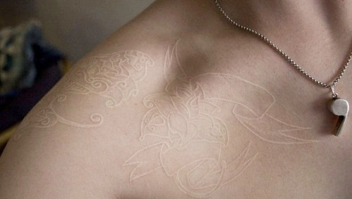 Sử dụng mực trắng tạo hình xăm nhẹ nhàng, lạ mắt, phù hợp với người thích sự tinh tế.